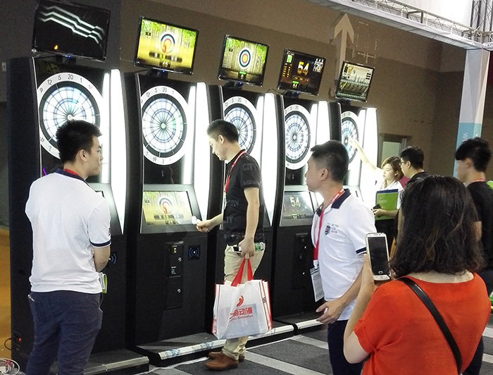 傳統(tǒng)投飛鏢,稱不上是游戲,趣味不足一直是推廣難題,但現(xiàn)在電子飛鏢機(jī)可以玩出不同花樣,點(diǎn)擊界面操作就能看到不同的游戲供你選擇,即時(shí)點(diǎn)擊開(kāi)始,從雙屏幕顯示3D效果視覺(jué)、打擊音效、動(dòng)畫(huà)特技等不同層次影響你,消費(fèi)方便快捷,無(wú)形中加快消費(fèi)的速度,增加營(yíng)業(yè)額。